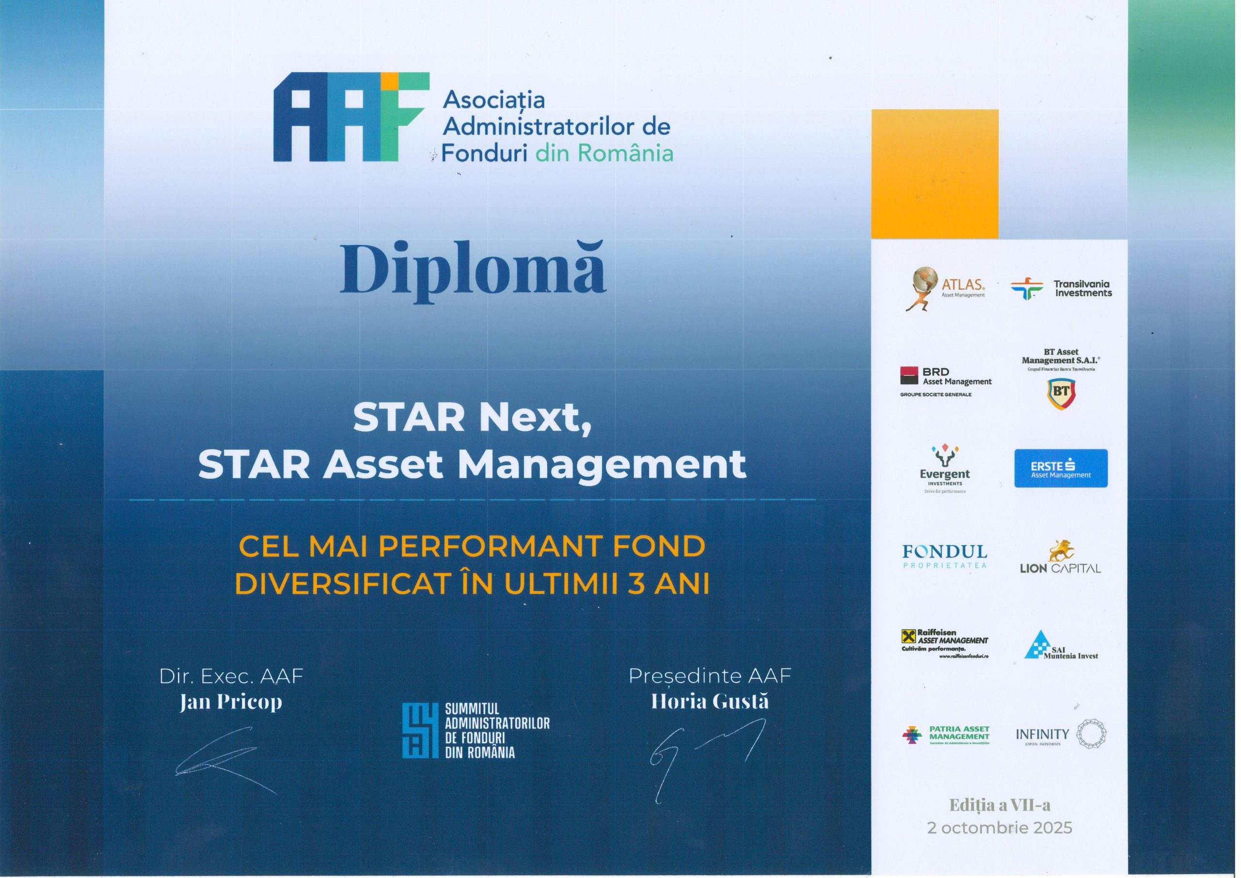 Cel mai performant fond diversificat în ultimii 3 ani: STAR Next, STAR Asset Management